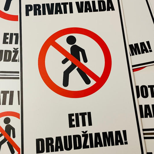 IšpardavimasŽenklas su užrašu "EITI DRAUDŽIAMA"