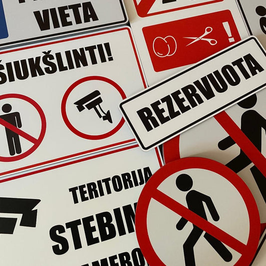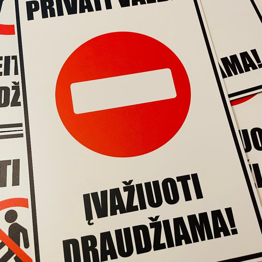 IšpardavimasŽenklas su užrašu "ĮVAŽIUOTI DRAUDŽIAMA"