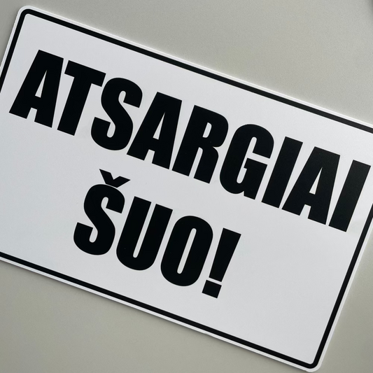 Ženklas "ATSARGIAI ŠUO!"