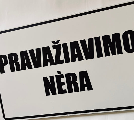 Ženklas su užrašu "PRAVAŽIAVIMO NĖRA"
