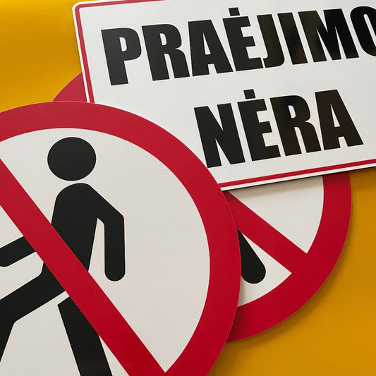 Ženklas su užrašu "PRAĖJIMO NĖRA"